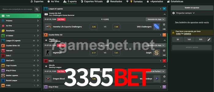 O 3355bet oferece uma grande seleção de opções de apostas em e-sports com probabilidades competitivas